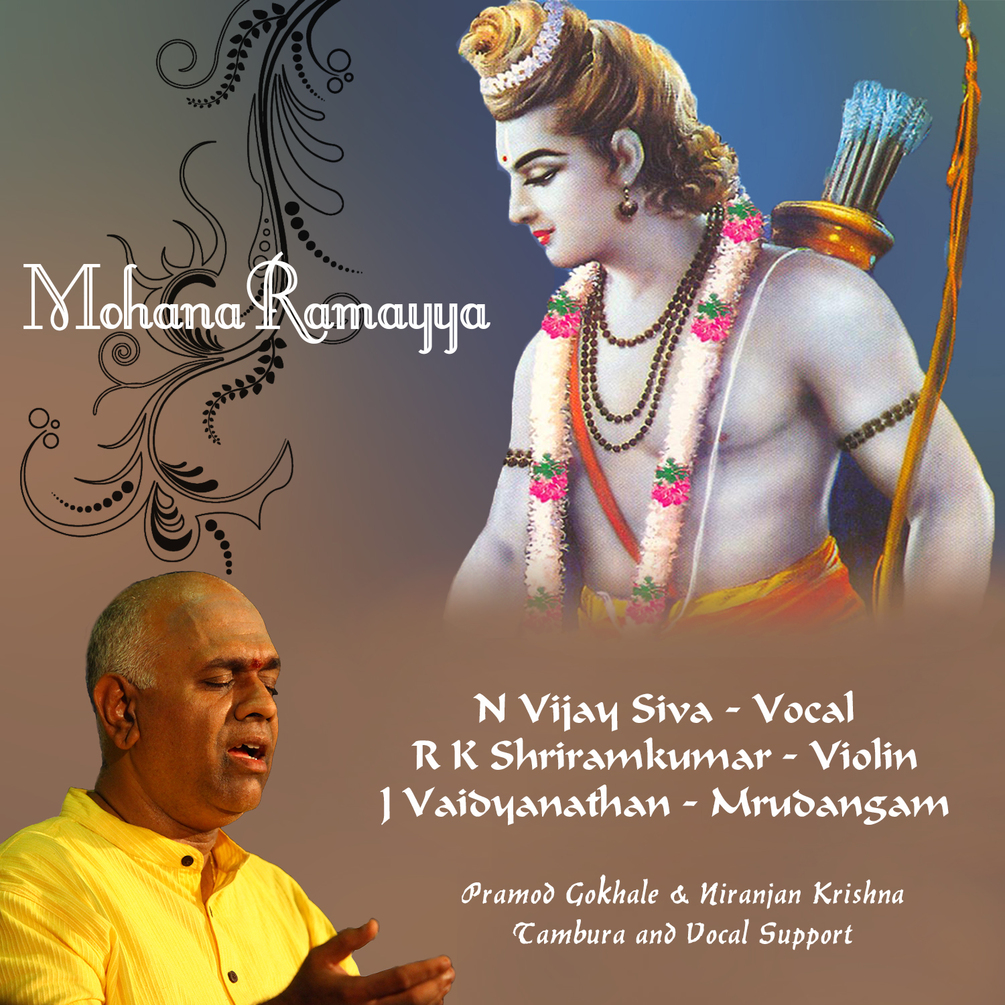 This concert features Mohana Ramayya, a ragam tanam pallavi in Mohana Raga, extensively popularised by Sri D K Jayaraman, whose disciple Vijay Siva is.